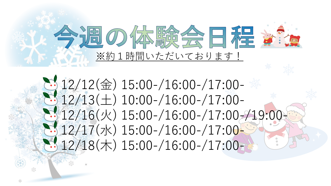 ※定員に限りがあり、ご希望の時間帯に添えない場合があります。予めご了承下さい。