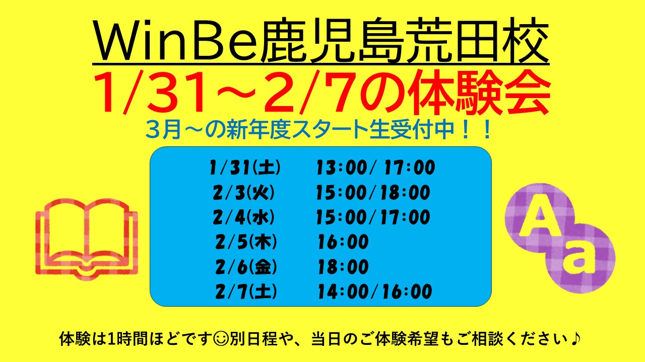 〇●〇即日体験・ご説明可能です!📞099-803-9506(担当:藤田) ※教室直通、ご予約がスムーズです!〇●〇