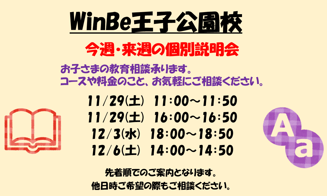 WinBeでは、英語をはじめてみたい、もっと英語を身につけたいというお子さまを対象に、うれしい情報が盛りだくさんです。 この機会にぜひともご利用ください。ご来校お待ちしております。