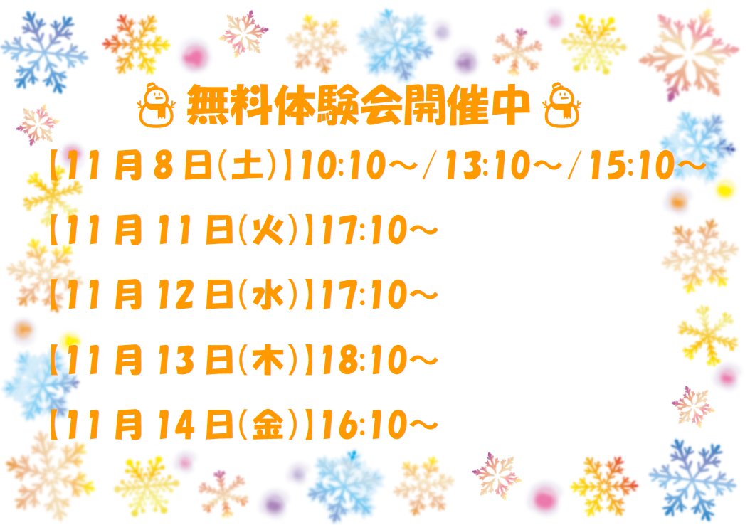 ※定員に限りがあり、ご希望の時間帯に添えない場合があります。予めご了承下さい。