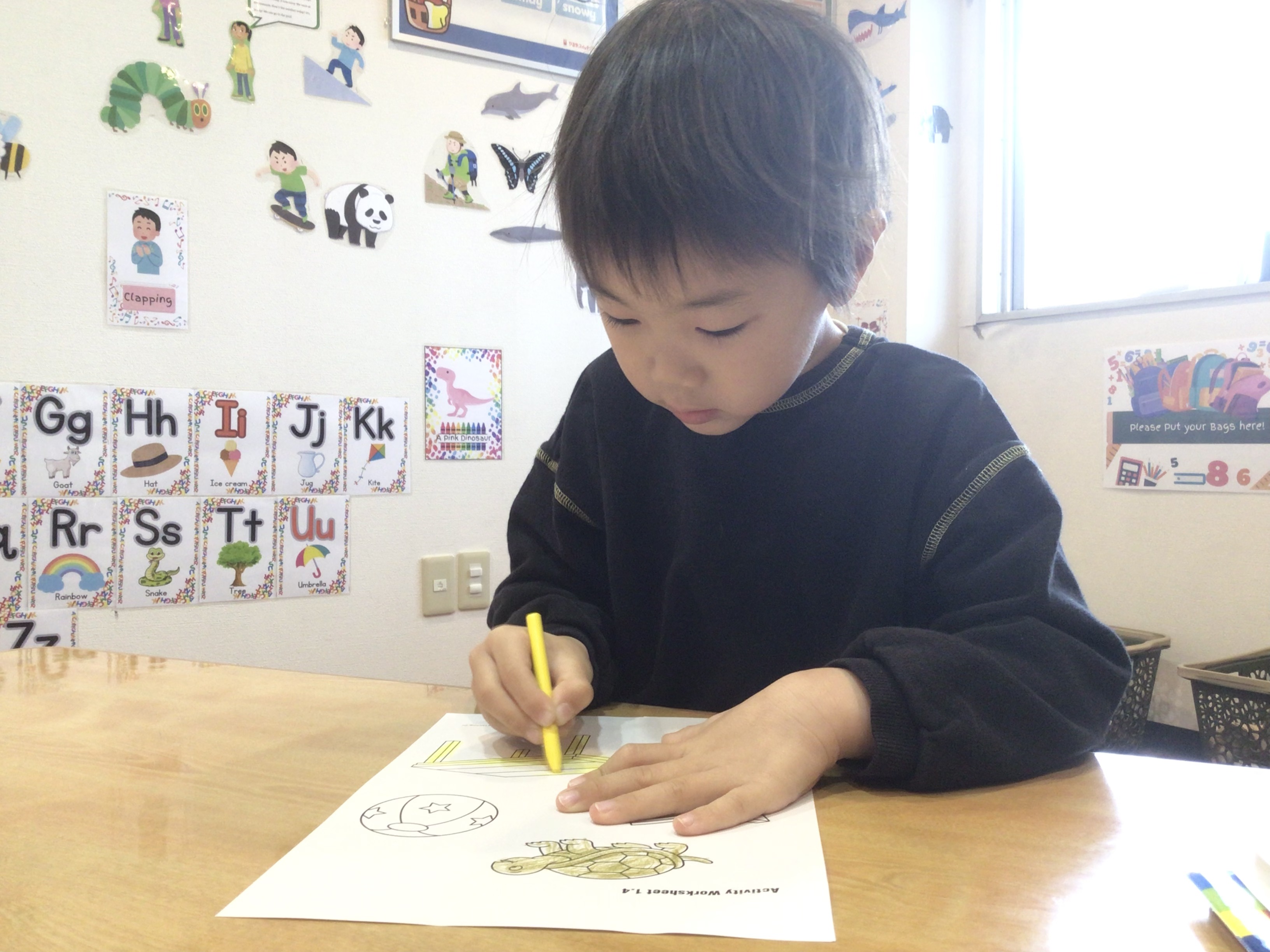 アルファベットの文字と音を結び付けていきます