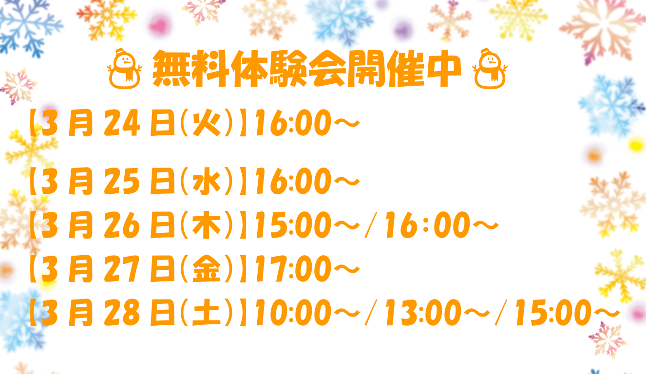 ※定員に限りがあり、ご希望の時間帯に添えない場合があります。予めご了承下さい。