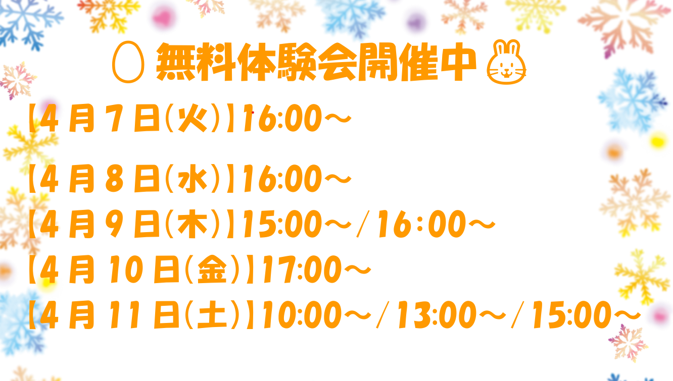 お申込み可能な曜日や時間帯(空き状況)など、ご不明な点がございましたらお気軽にお問い合わせください。