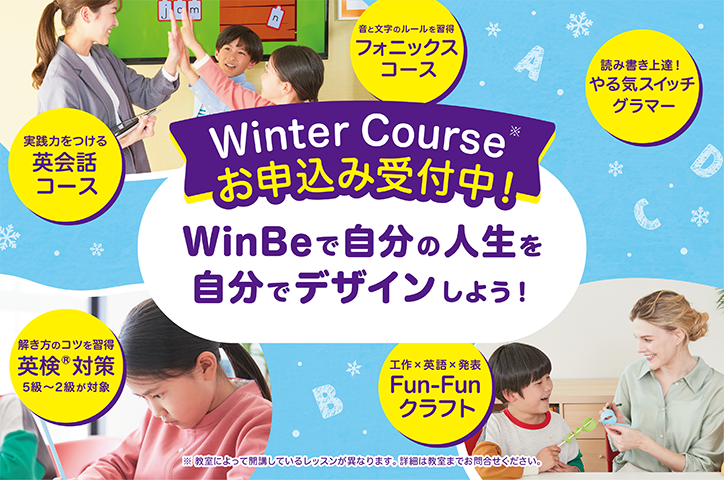 WinBeでは、英語をはじめてみたい、もっと英語を身につけたいというお子さまを対象に、うれしい情報が盛りだくさんです。 この機会にぜひともご利用ください。ご来校お待ちしております。