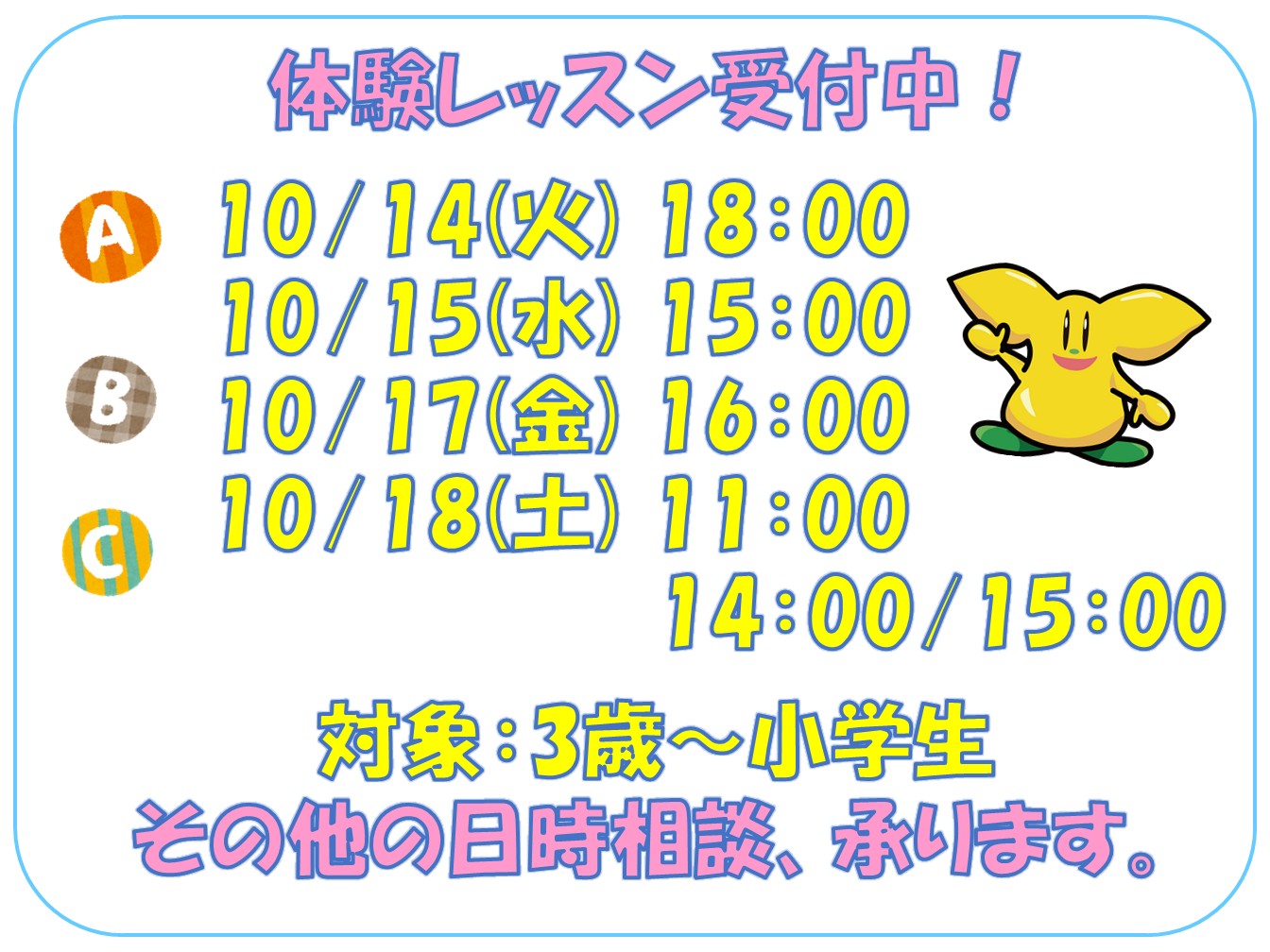 体験をご希望の方はご希望日時をお知らせください!