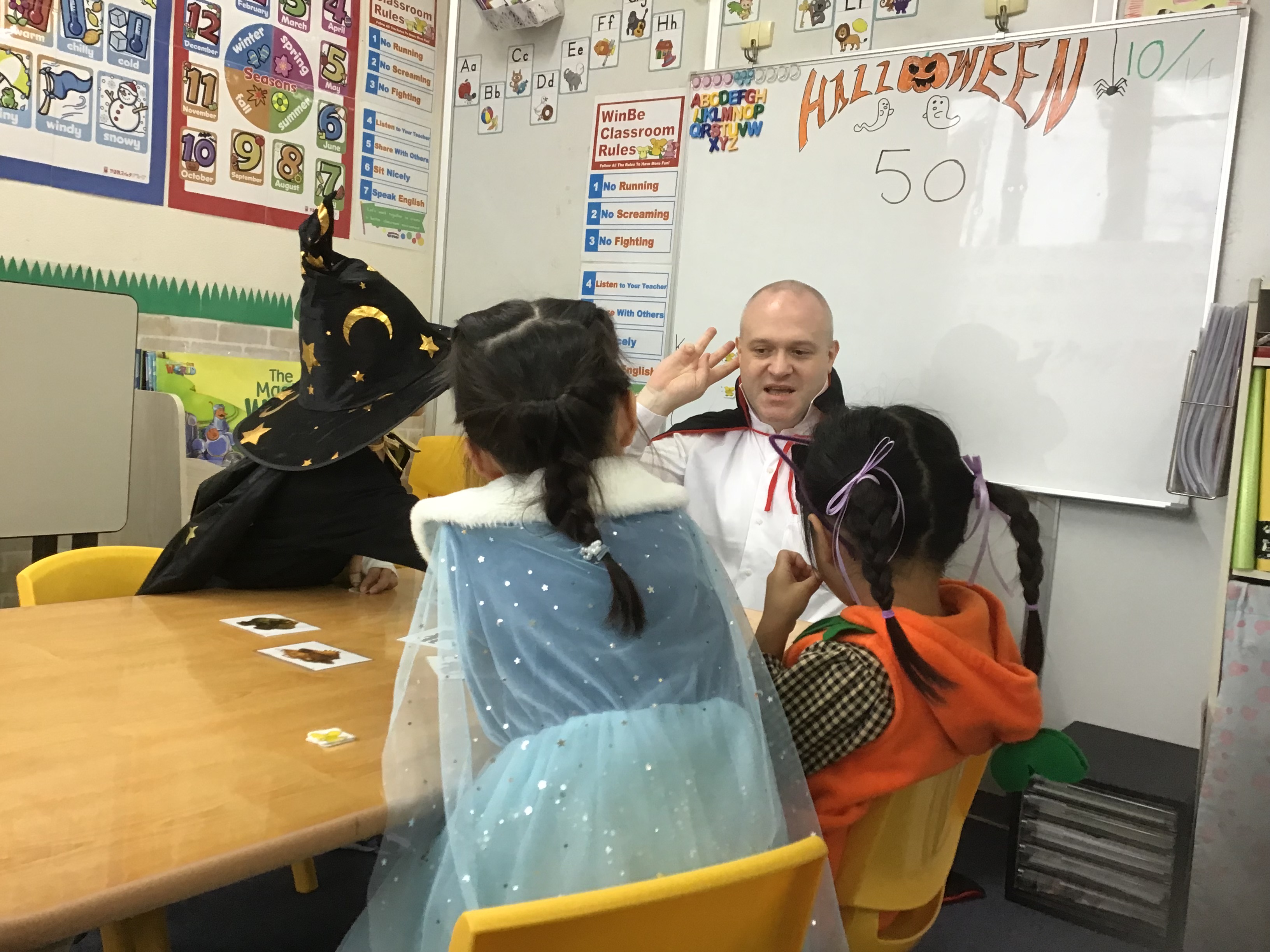先生と子どもたちはいつも楽しく英語を学んでいます。
