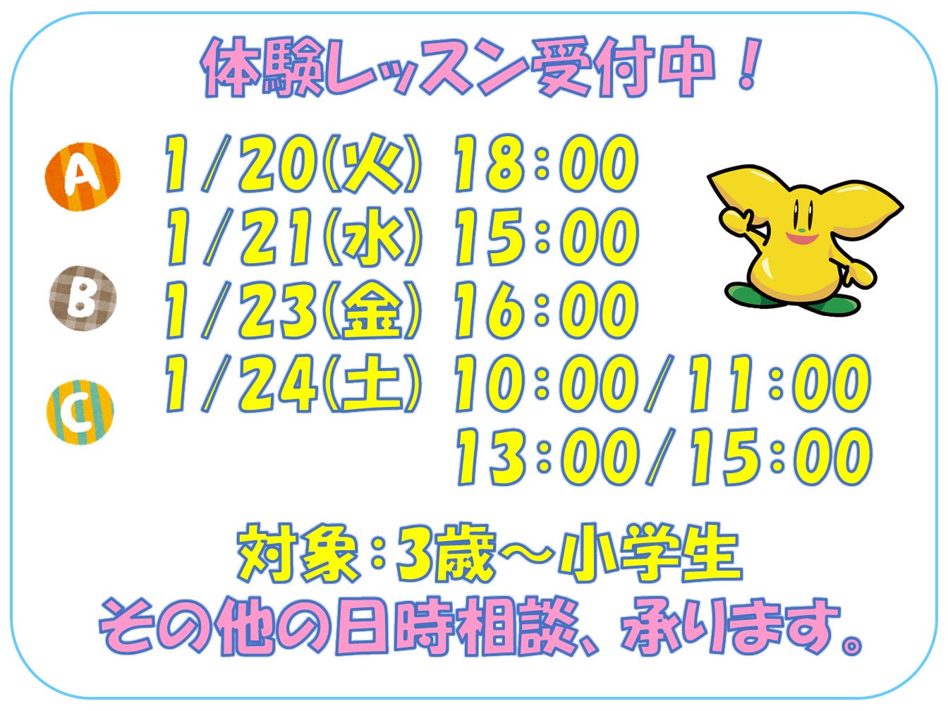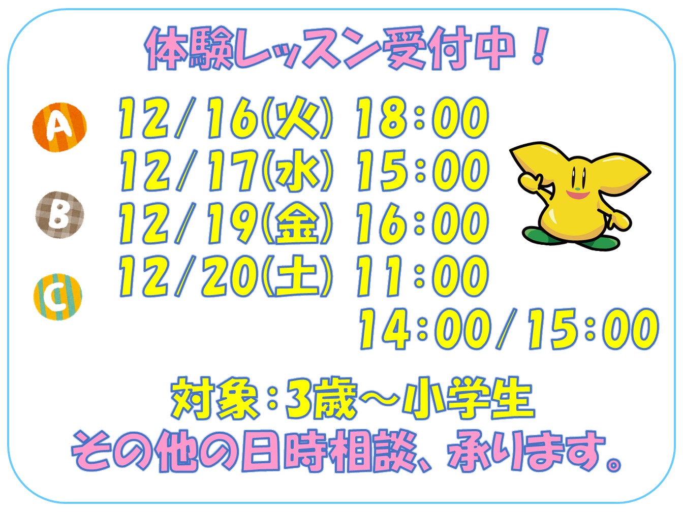 レッスンスケジュールの関係上、ご希望に沿えないケースもある旨、ご了承ください。