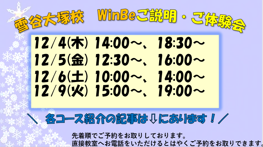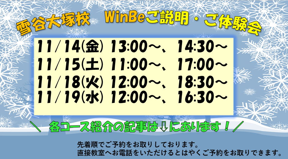 WinBe雪が谷大塚校のホームページをご覧いただきありがとうございます。