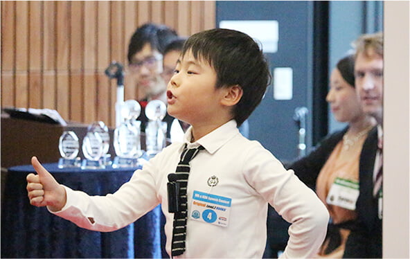 英語で伝える力を競うスピーチコンテスト。日ごろのレッスンの成果をたくさんの観客の前で披露します。