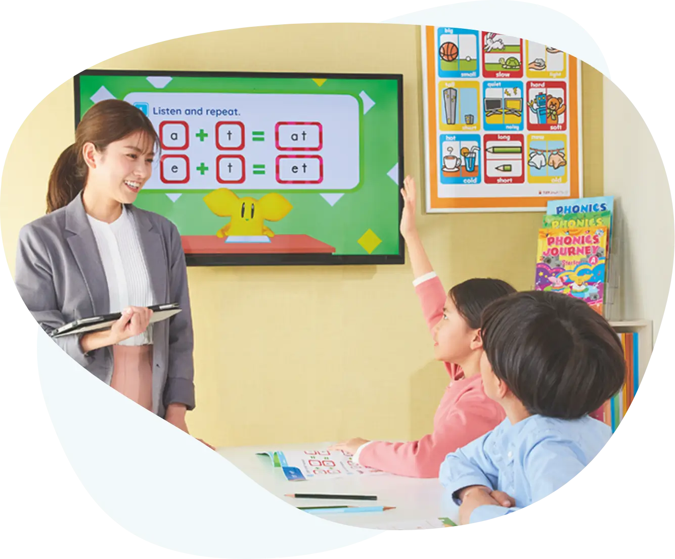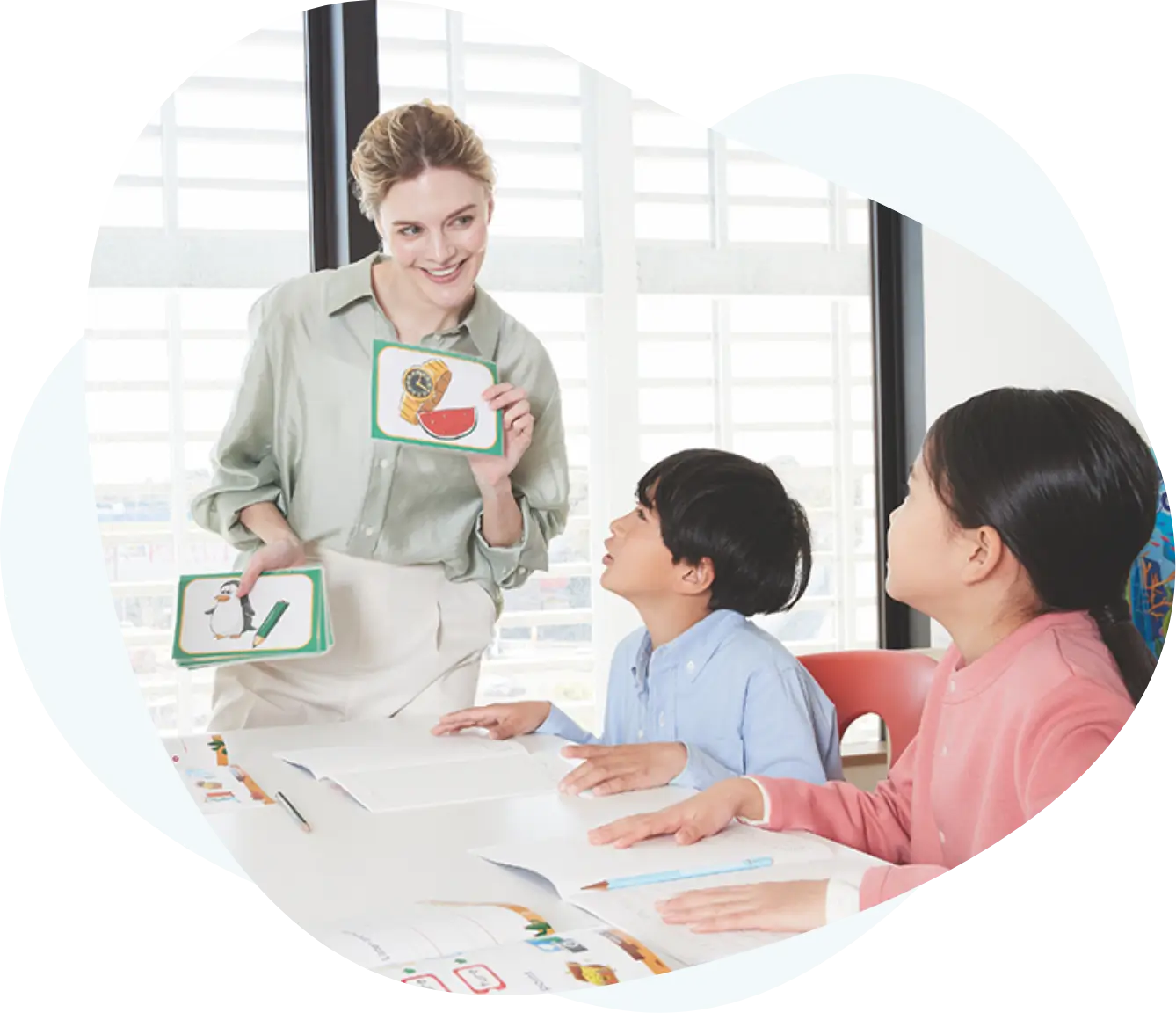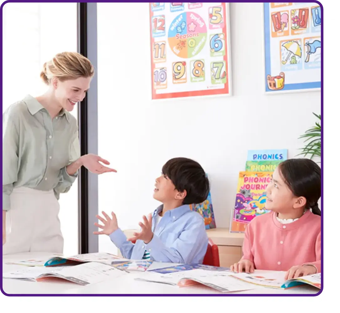 少人数制のレッスンで、お子さまのつまずきを見逃さずきちんとサポートいたします。集中しやすく、発話量も増えることで、英語を理解し自信がついていきます。